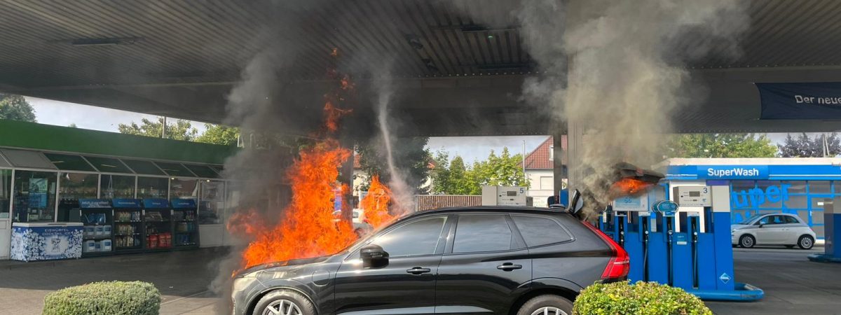 Pkw-Brand an ARAL-Tankstelle