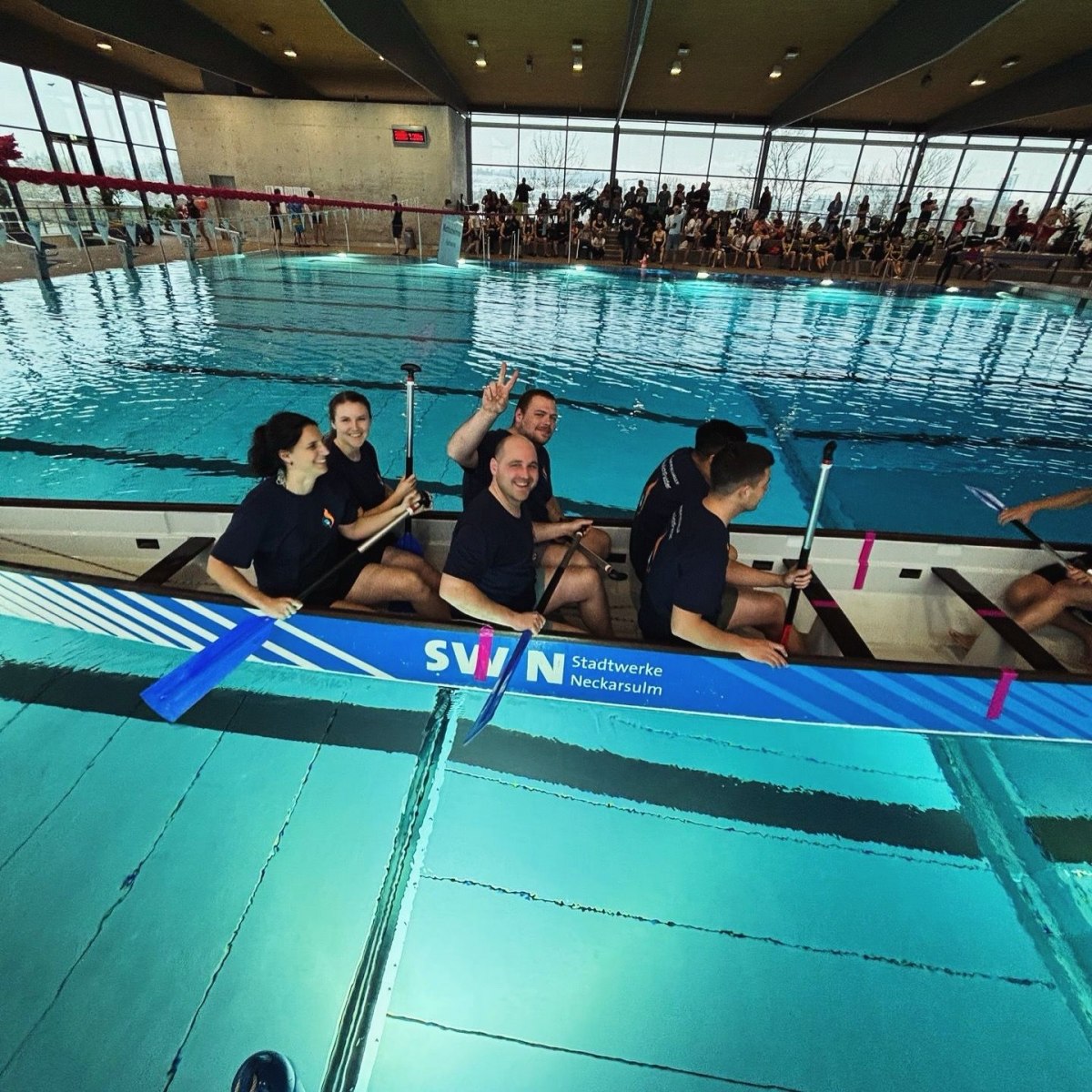 Am 15. Februar 2025 nahm das Team der Feuerwehr Neckarsulm, die „Blaulichtpaddler“, am 4. Indoor Drachenboot Cup im Aquatoll Sportbad Neckarsulm teil. Unser Team startete in der Fun Mixed Gruppe, bestehend aus vier Männern und zwei Frauen im Boot.