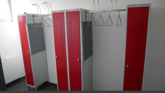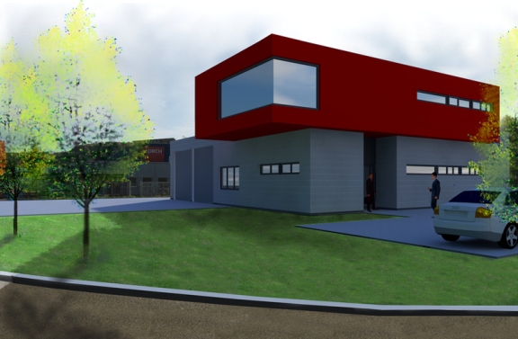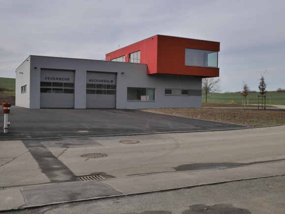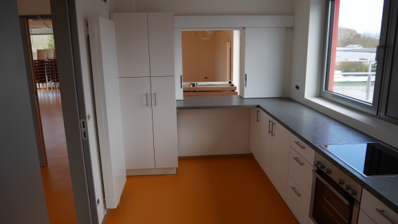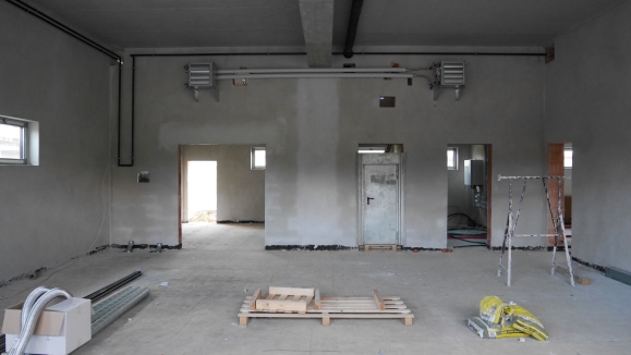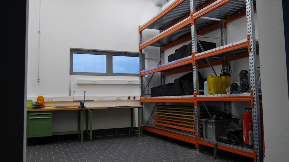 Links Fahrzeughalle, Rechts oben Unterrichtsraum