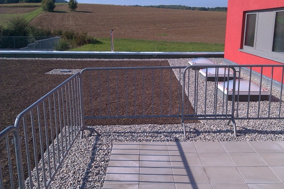 Dach der Fahrzeughalle mit Blick auf Unterrichtsraum