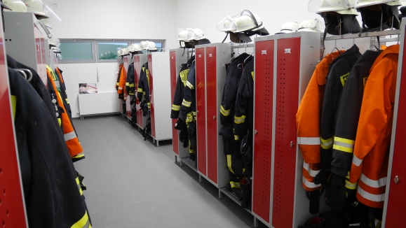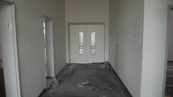 Flur zur Fahrzeughalle, Linke Seite Eingang zur Einsatzzentrale