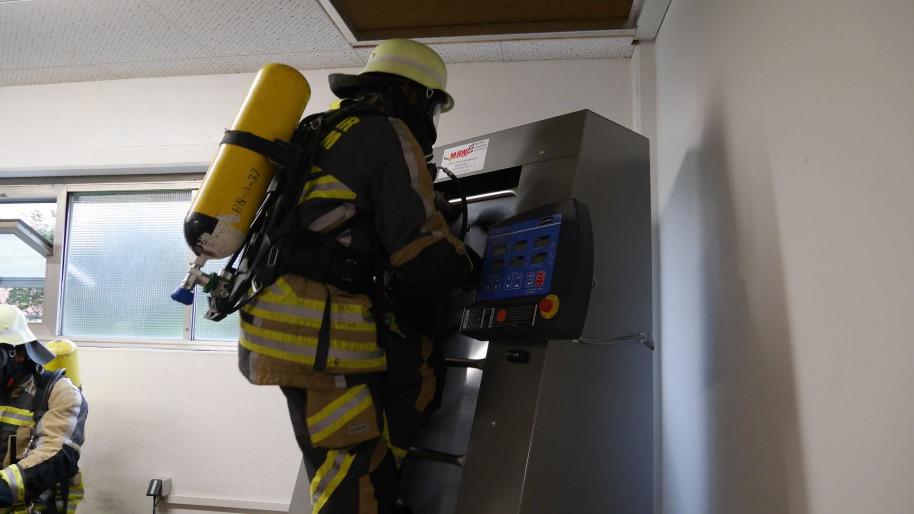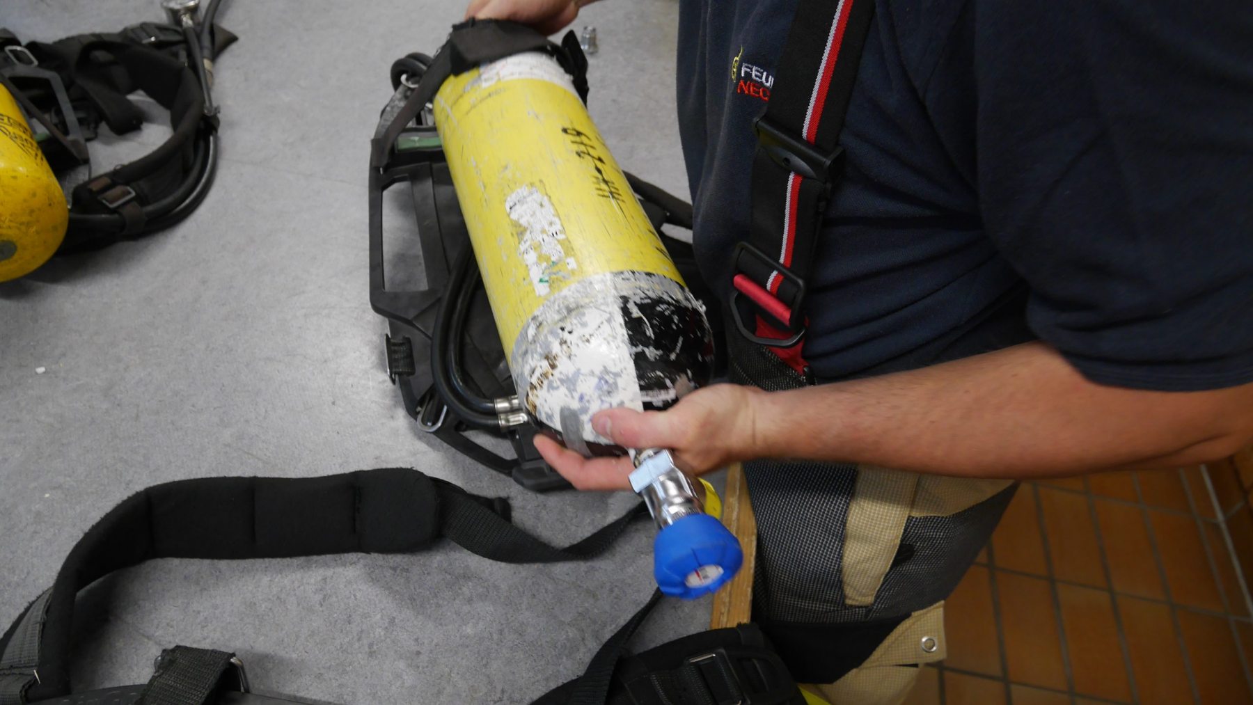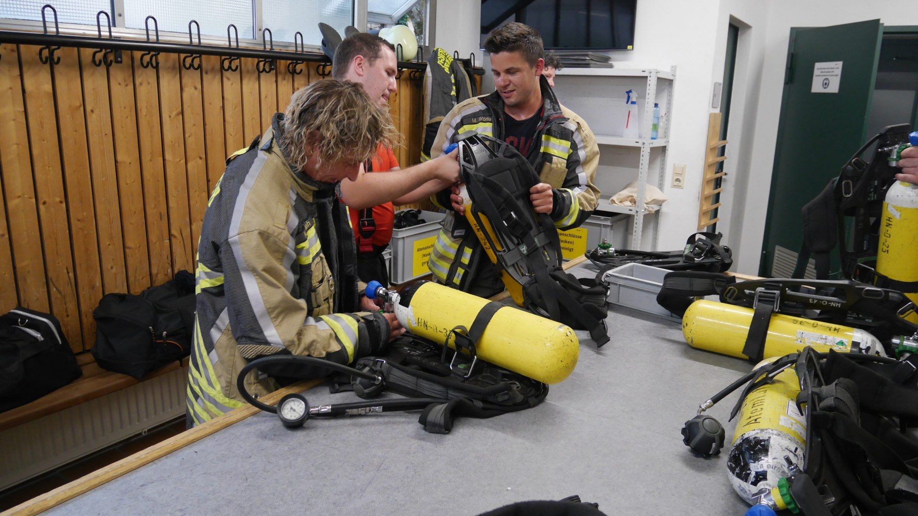 Anschließend wurde von Ihnen der Restdruck der Atemschutzflasche jedes Trägers aufgenommen und protokolliert. Danach konnten die Atemschutzgeräte abgelegt und die einzelnen Komponenten (Lungenautomat, Flasche, Maske) zur Prüfung und zur Reinigung übergeben werden.