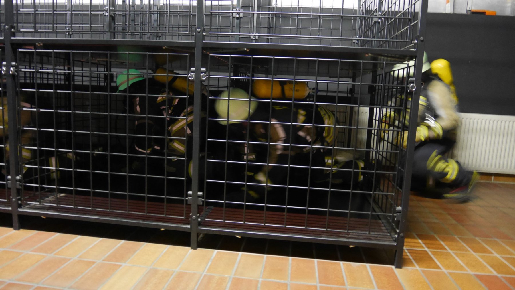 Als die erste Gruppe ausgerüstet war konnte es auch schon losgehen. Mit einem Gesamtgewicht von ca. 25kg (10 kg Einsatzkleidung und zusätzlich 15 kg Atemschutzgerät) wurden die einzelnen Stationen nun bestritten.