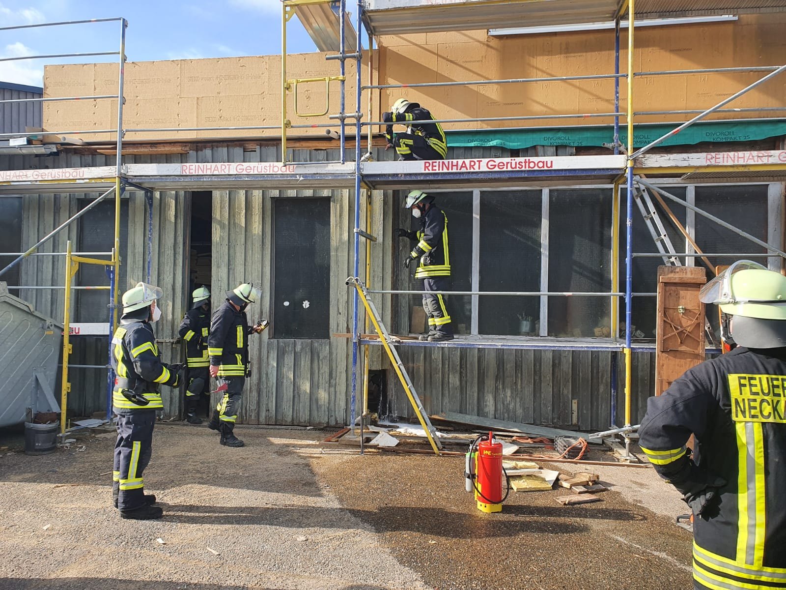 Die Abteilungen Dahenfeld und Neckarsulm wurden mit dem Stichwort „Gebäudebrand“ alarmiert. Auf dem Gelände einer Firma im Ortsteil Dahenfeld brannte aus noch ungeklärten Gründen die Holzfassade eines Hallentores. Das Feuer wurde mittels Schaumlöscher gelöscht. Eine Nachkontrolle mit Hilfe einer Wärmebildkamera wurde im Anschluss durchgeführt. Danach konnte die Einsatzstelle an den Eigentümer übergeben werden.