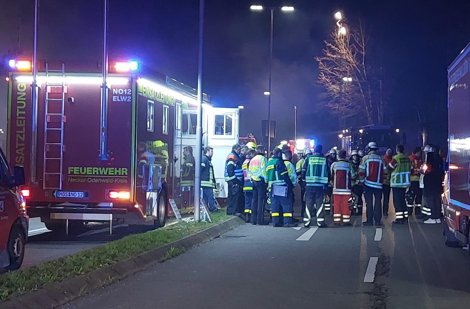 Am Montagnachmittag war es zu einem Großbrand in einem Einkaufscenter in Mosbach-Neckarelz gekommen. Im Einsatz waren insgesamt 250 Einsatzkräfte von verschiedenen Hilfsorganisationen.
