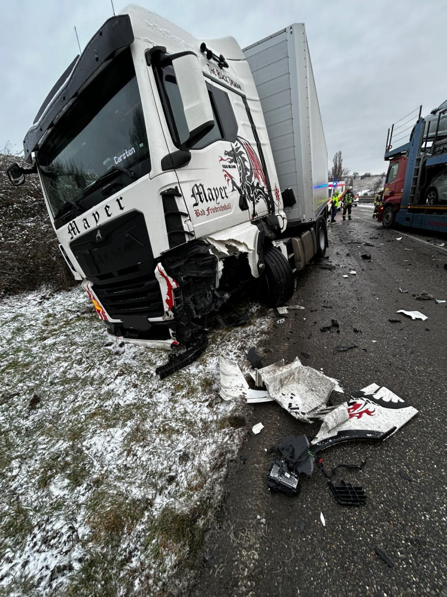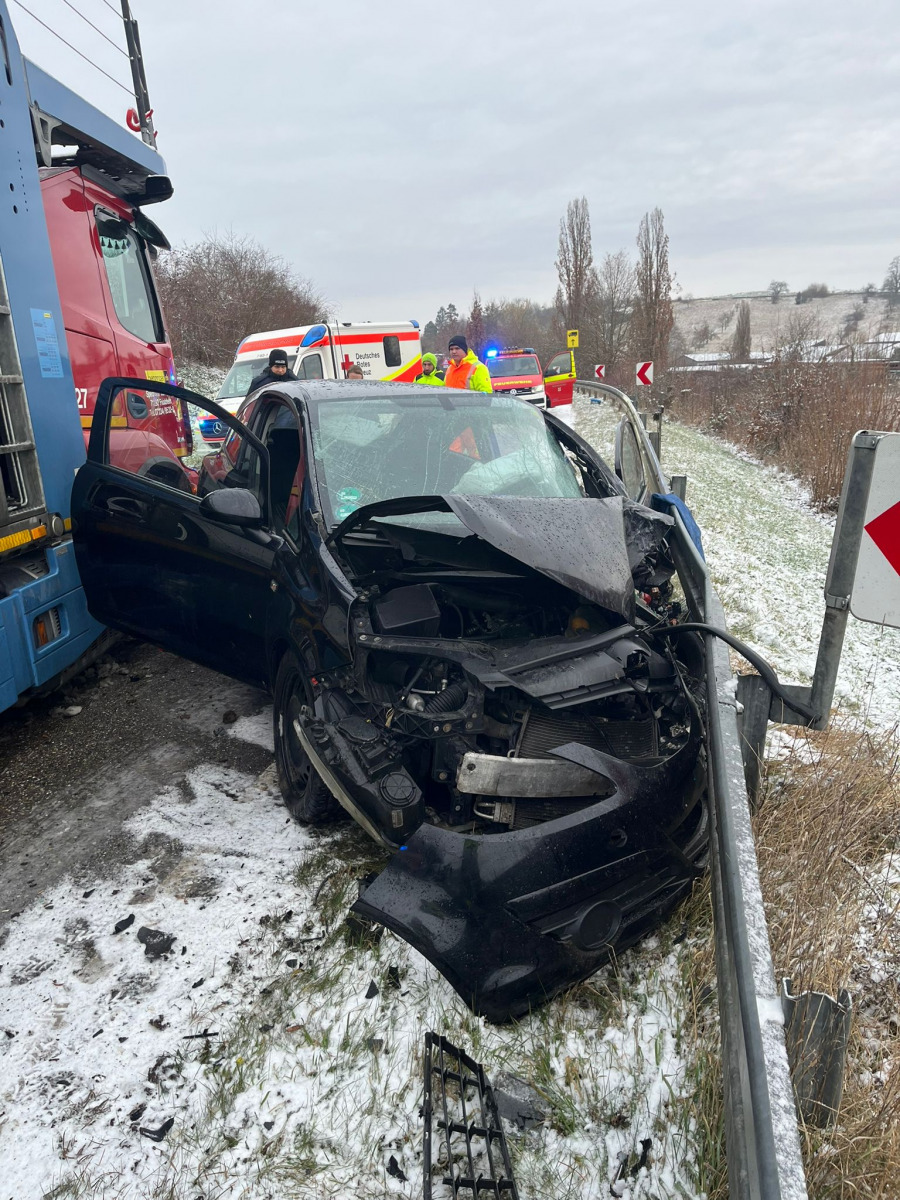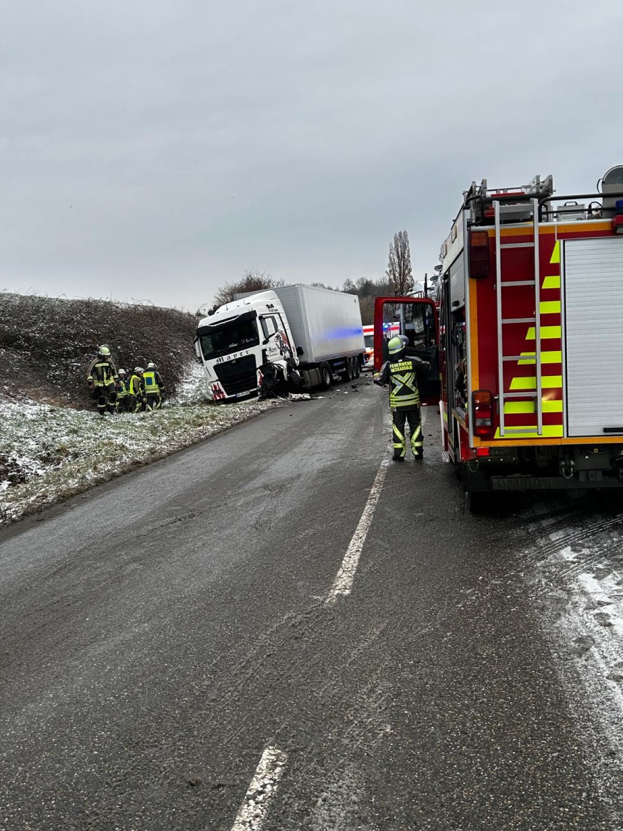 Am Morgen des 12. Januar wurde die Feuerwehr Neckarsulm zu einem Verkehrsunfall auf der L1095 alarmiert. Im Bereich zwischen Dahenfeld und Neuenstadt war eine Pkw-Fahrerin auf die Gegenfahrspur geraten und dort frontal mit einem ordnungsgemäß fahrenden Lastkraftwagen kollidiert. Zum guten Glück wurde die Fahrerin hierbei nicht ihn Ihrem Fahrzeug eingeklemmt. Der Fahrer des Lastkraftwagens blieb physisch unverletzt.