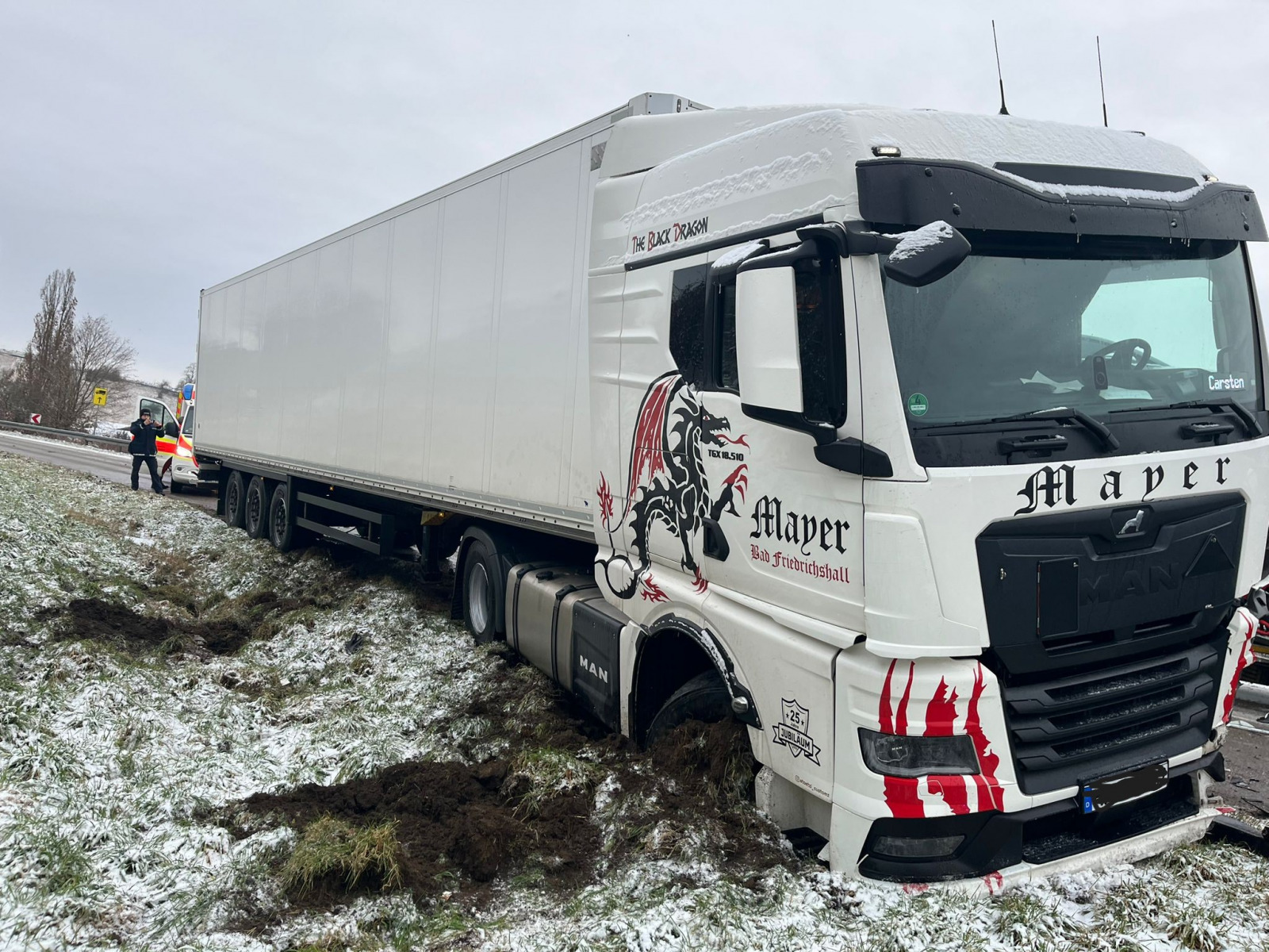 Der unverletzte Lkw-Fahrer wurde vor Ort durch den Rettungsdienst betreut.