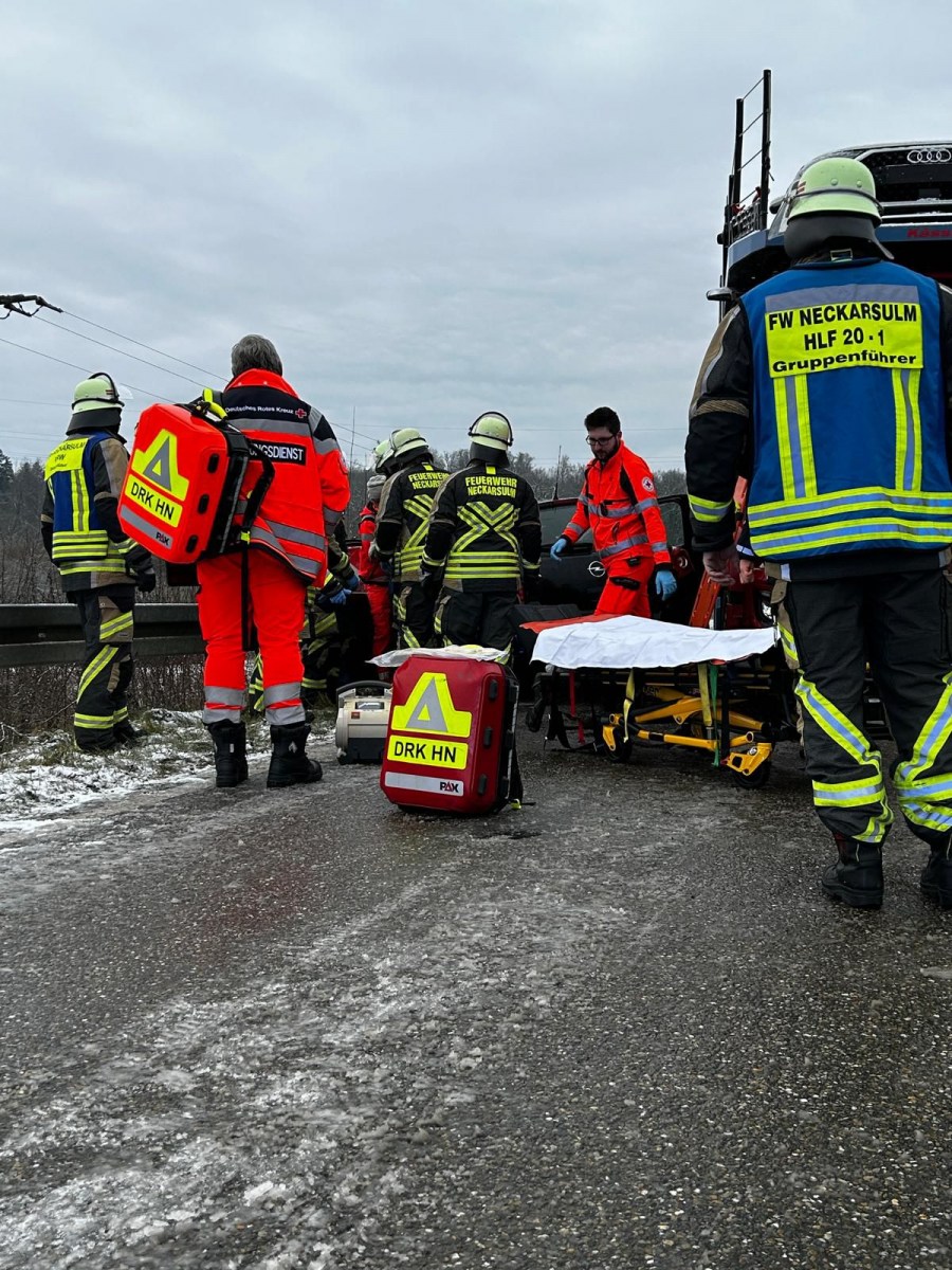 Die Abteilung Dahenfeld und die Abteilung Neckarsulm stellten während der Rettungsmaßnahmen den Brandschutz an der Unfallstelle sicher. Eine Kontrolle der Unfallfahrzeuge ergab, dass keine Betriebsstoffe austraten.