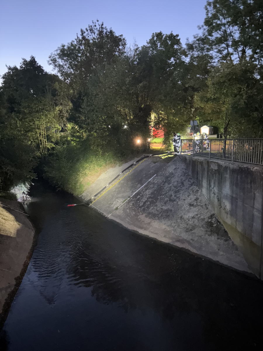 Hierfür kam die Fachgruppe Wasserförderung, die in der Abteilung Obereisesheim stationiert ist, nach Neckarsulm. Gemeinsam wurde zunächst die Übungsörtlichkeit sowie die Vorgehensweise besprochen. Anschließend machten sich alle auf den Weg zum unteren Parkplatz des Aquatoll, um Wasser aus der Sulm zu entnehmen.