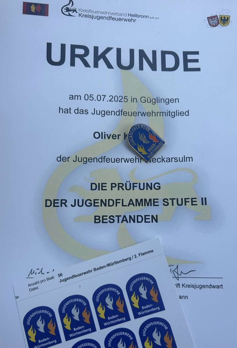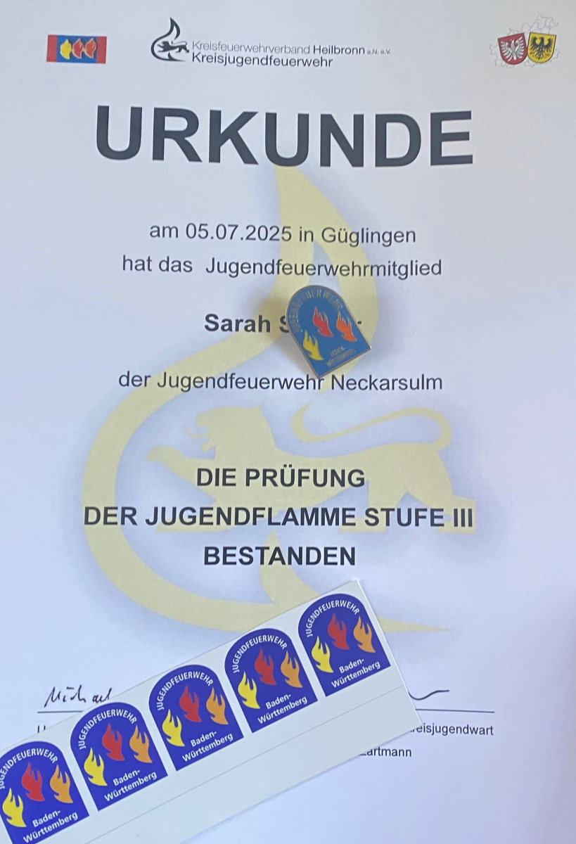 An dieser Stelle, im Namen der Feuerwehr Neckarsulm: Herzlichen Glückwunsch zur bestandenen Jugendflamme!