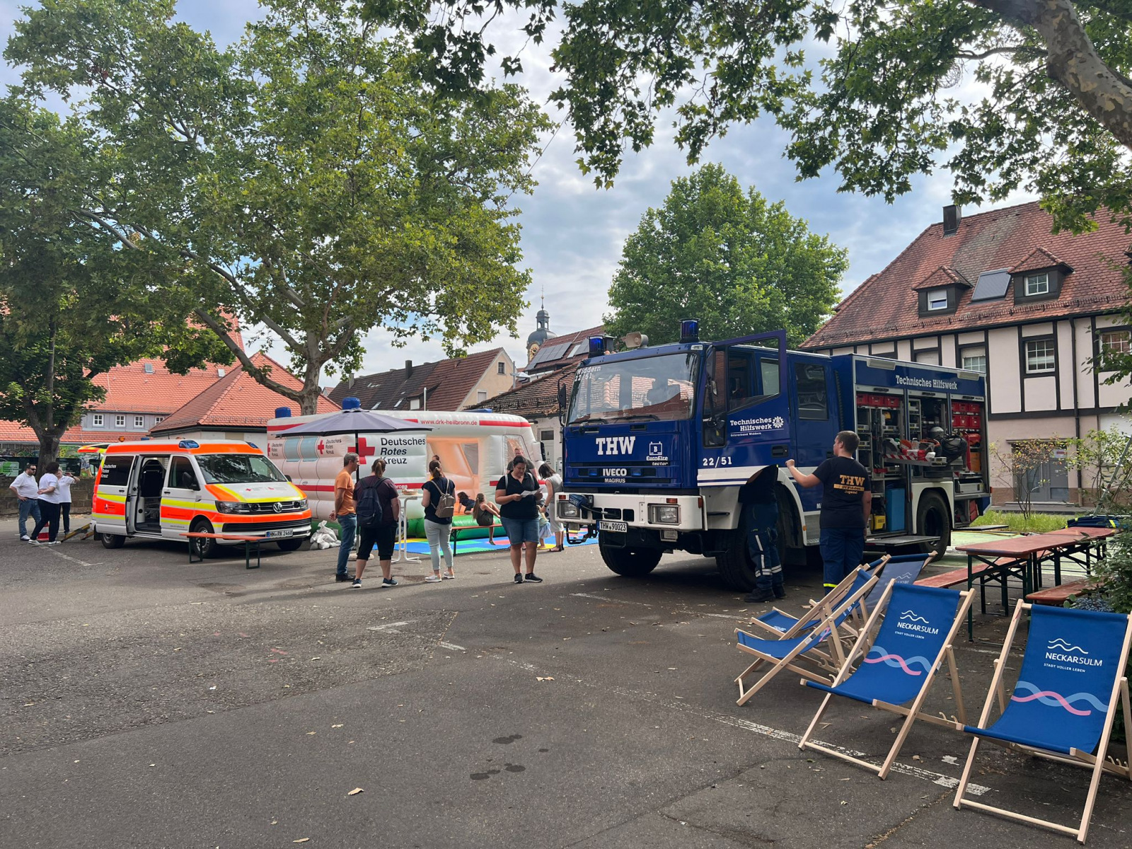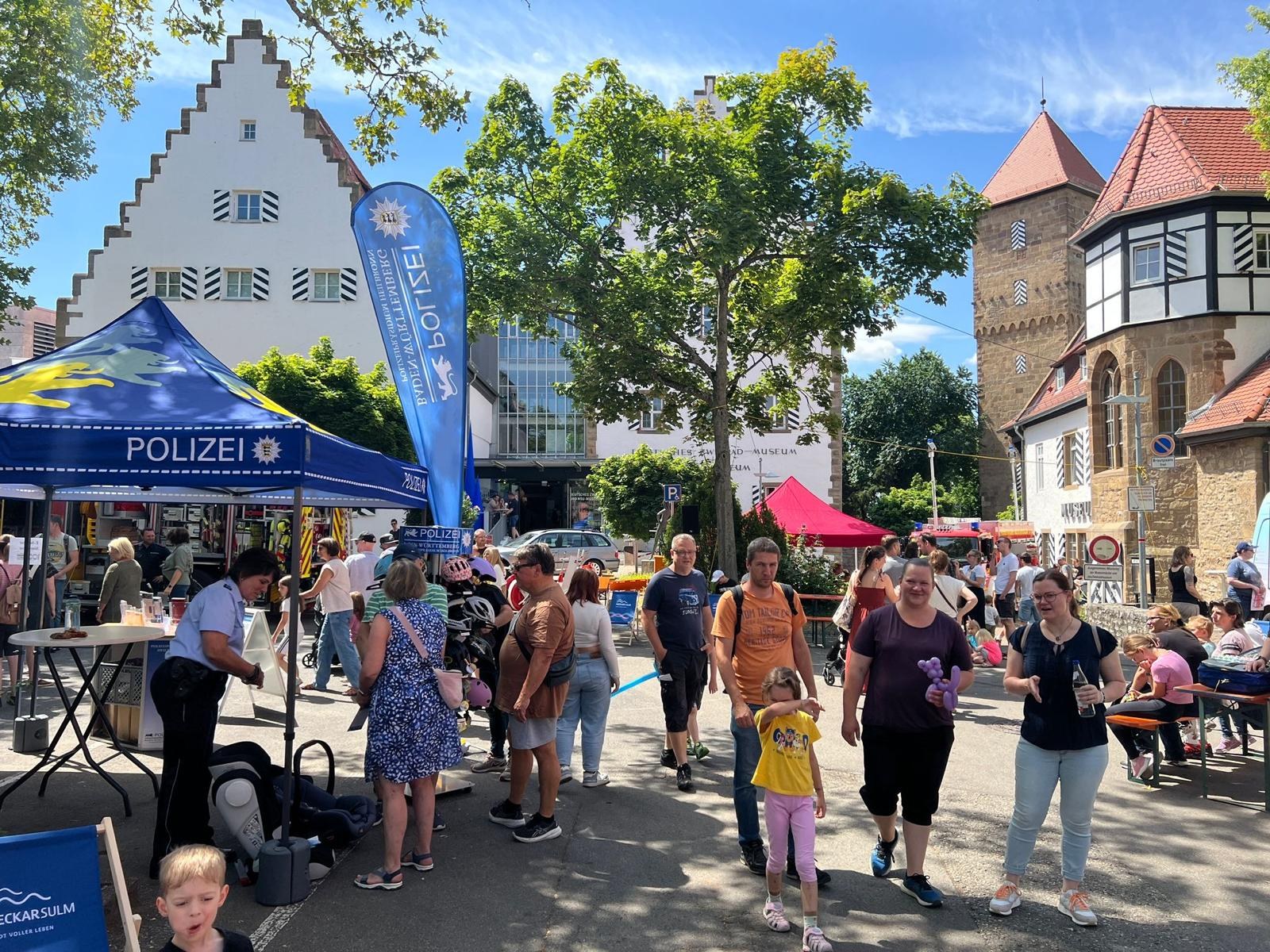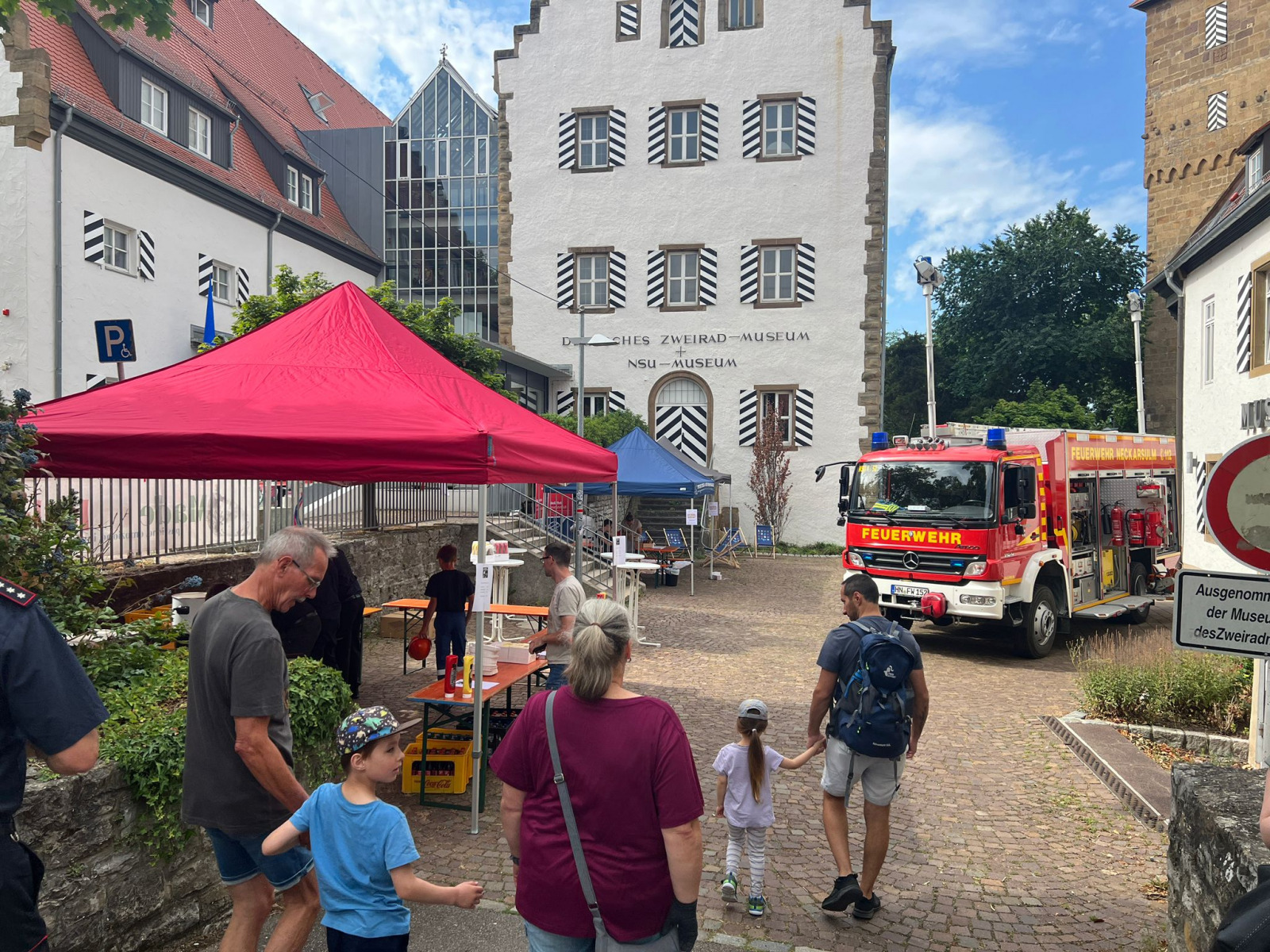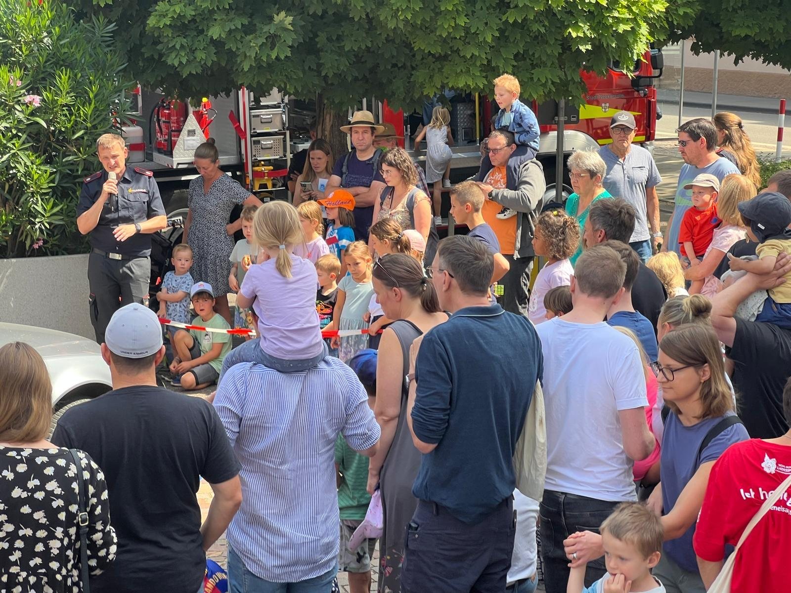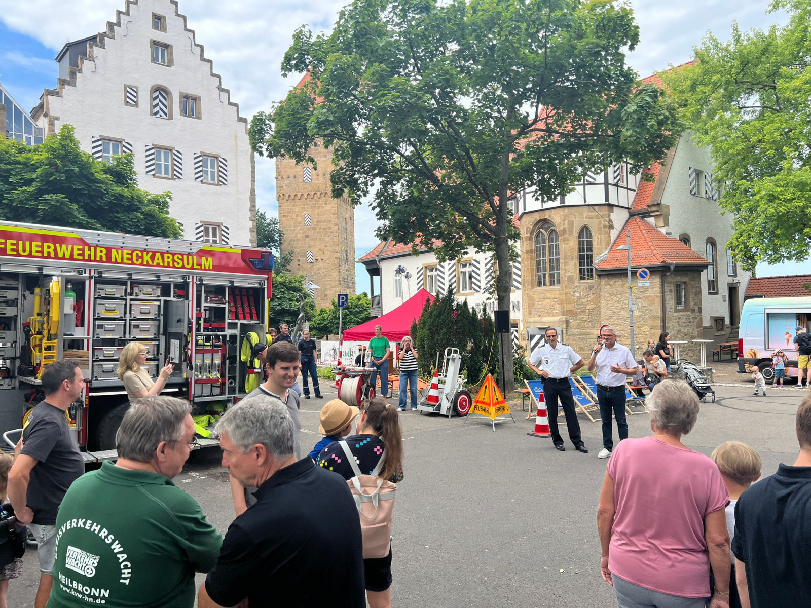 Im Rahmen der landesweiten Aktionswoche der Verkehrssicherheit fand am Sonntag, den 13.07.2025 am Deutschen Zweirad- und Stadtmuseum in Neckarsulm ein Aktionstag mit vielen Blaulichtorganisationen unter dem Motto „Kinder im Blick“ statt. Neben uns als Feuerwehr waren auch die Polizei, das THW, das DRK, der ASB und die Kreisverkehrswacht Heilbronn vertreten. Eingeladen waren vor allem Familien, um spielerisch und mit jeder Menge Action alles über Verkehrssicherheit zu lernen.